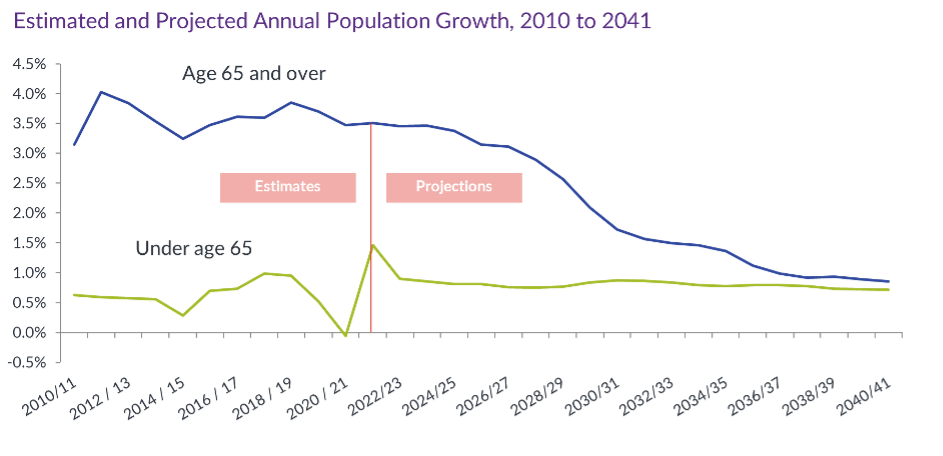 On the flip side, we are also witnessing consistent growth amongst the older population, especially those aged 75 and over. For the next two decades, the aging population will continue to have a stronger growth rate than the population under 65. This is set to have far-reaching implications for healthcare, social services and more.