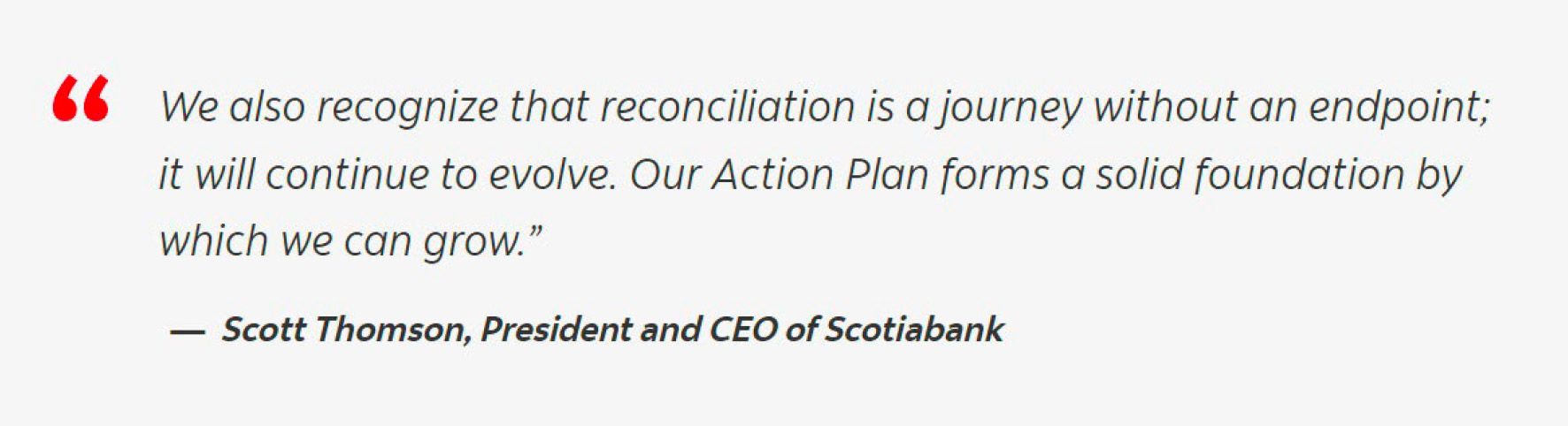 She said she feels confident that Scotiabank has the vision, the appetite and the staying power to be a corporate leader in reconciliation.